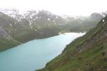 1km misst. Der See leuchtet zwischen den Bergen türkisblau, die ihn um bis zu 1300m überragen. Am ersten Tag